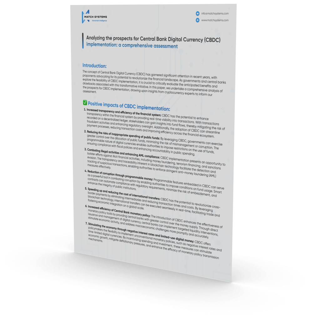 - Increased transparency and efficiency of the financial system: CBDC has the potential to enhance transparency within the financial system by providing real-time visibility into transactions. With transactions recorded on a decentralized ledger, stakeholders can gain insights into fund flows, thereby mitigating the risk of fraudulent activities and enhancing regulatory oversight. Additionally, the adoption of CBDC can streamline payment processes, reducing transaction costs and improving efficiency across the financial ecosystem.