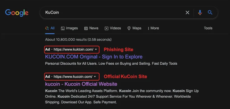 Clones of popular platforms. They often appear at the top of Google search results thanks to ads and look identical to the original. The difference may be just one character in the domain. A detailed analysis was published by ScamSniffer.
