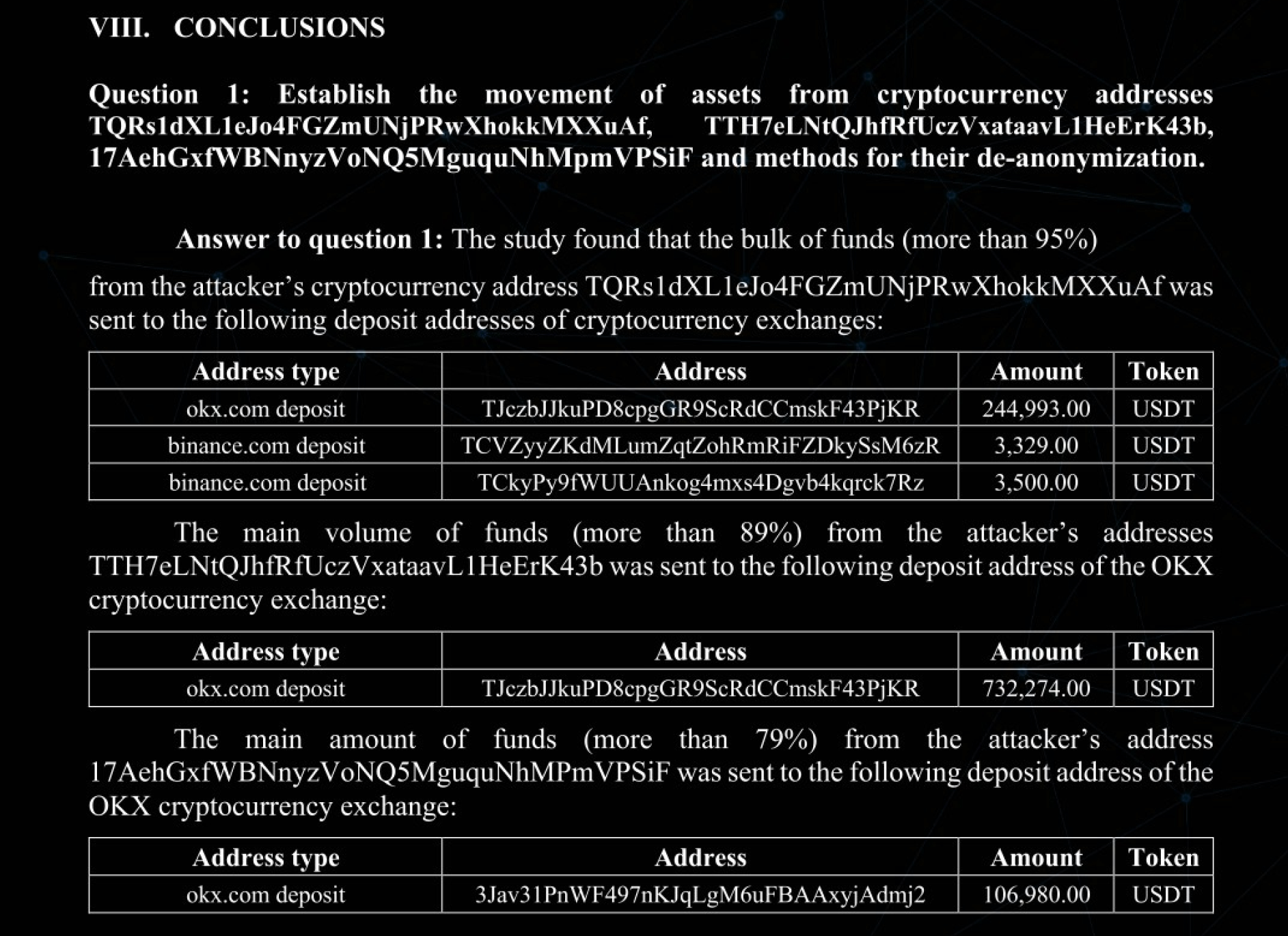 Аналитический отчет об инциденте является результатом комплексного блокчейн-расследования, направленного на проработку всех аспектов кражи криптовалюты.