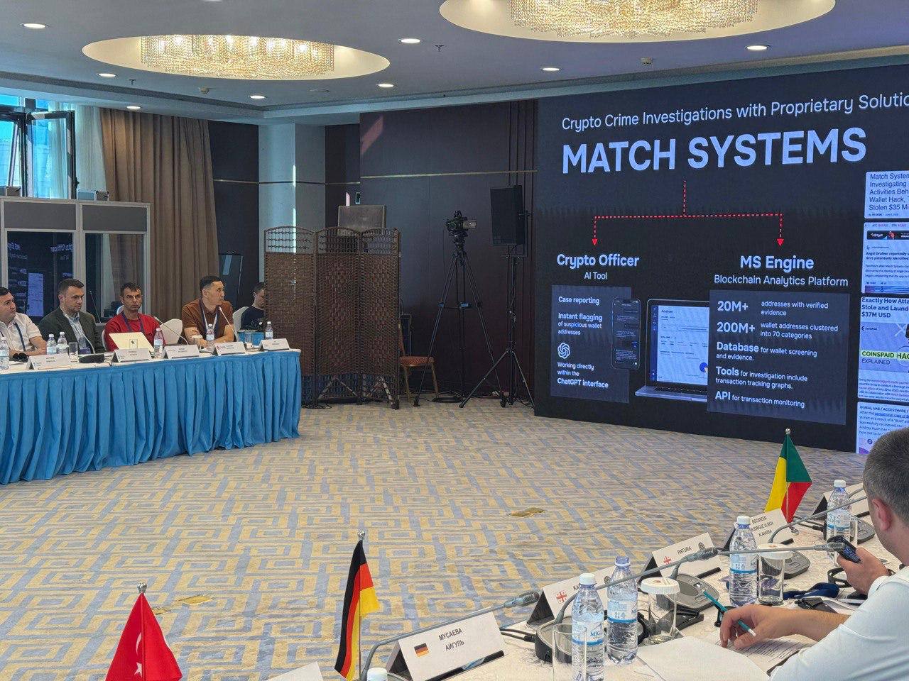 Аис Доржинов (сооснователь Match Systems) представил доклад о масштабах преступности в сфере криптовалют и продемонстрировал, как решения Match Systems на базе ИИ помогают быстро выявлять мошеннические схемы, блокировать украденные активы и снижать потери пользователей. В своем выступлении он также предложил создать Альянс по борьбе с киберпреступностью (Anti-Cybercrime Alliance) для объединения международных организаций в совместных усилиях против киберугроз.